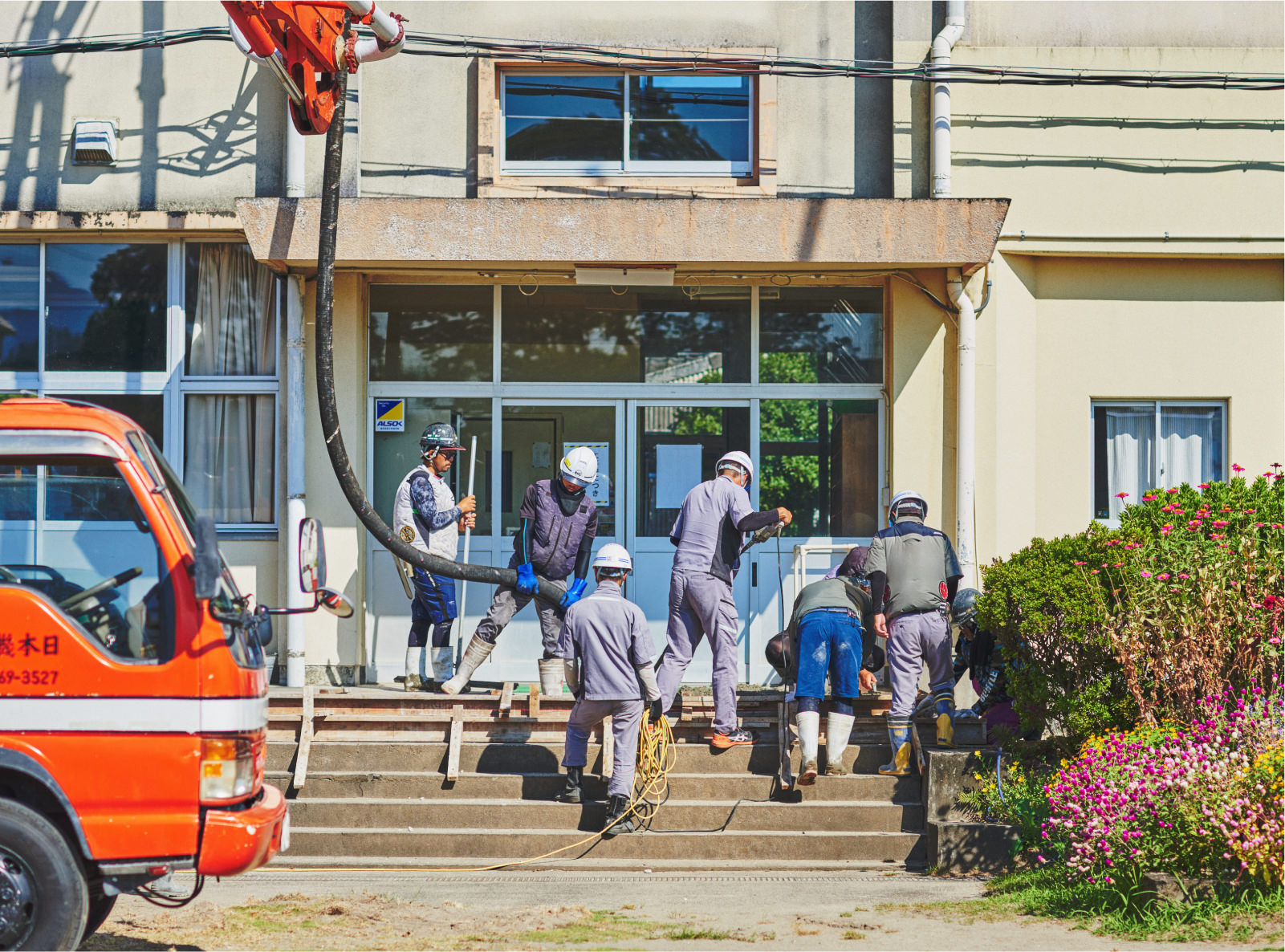 姶良市における公共施設の建築工事をメインに、新築からメンテナンス、時代の変化に伴う改修工事を行っています。また、民間企業の建物改修や、地域住民の皆様の家屋災害時の復旧など、様々なニーズにお応えしています。