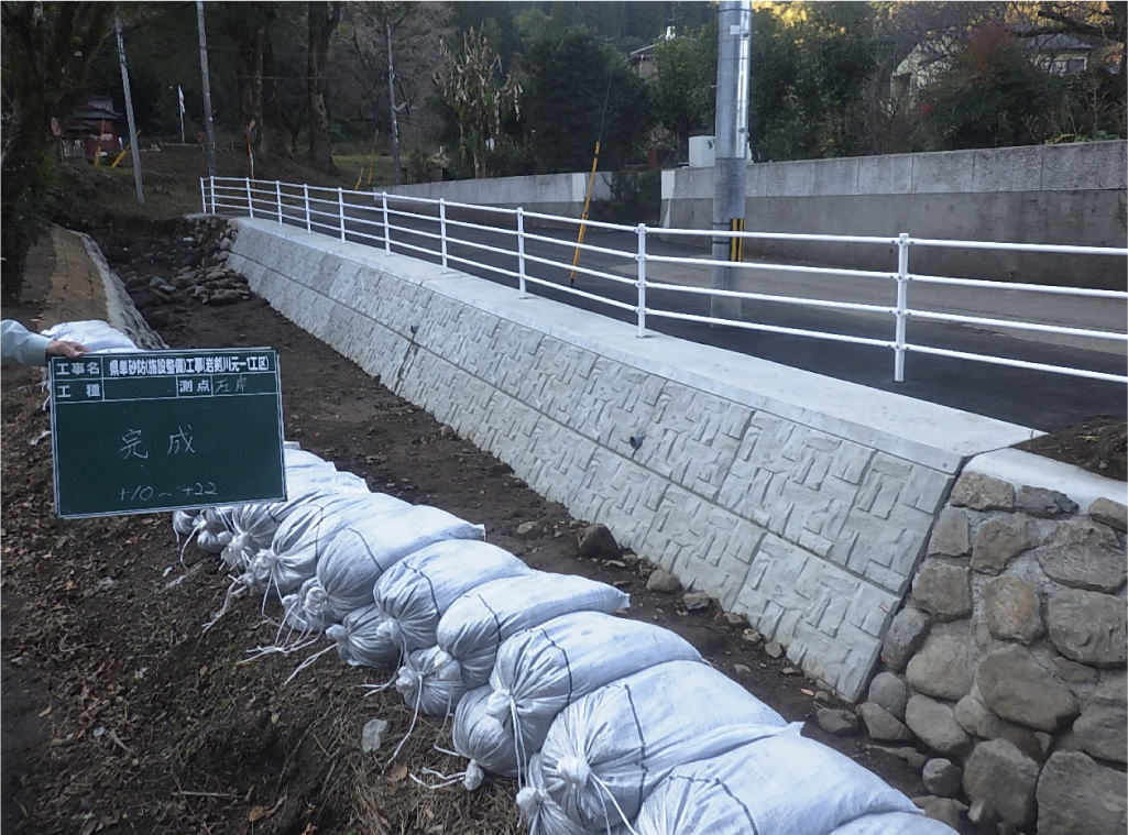 砂防施設の流路が大雨にて決壊しないように流路護岸を改修しました。